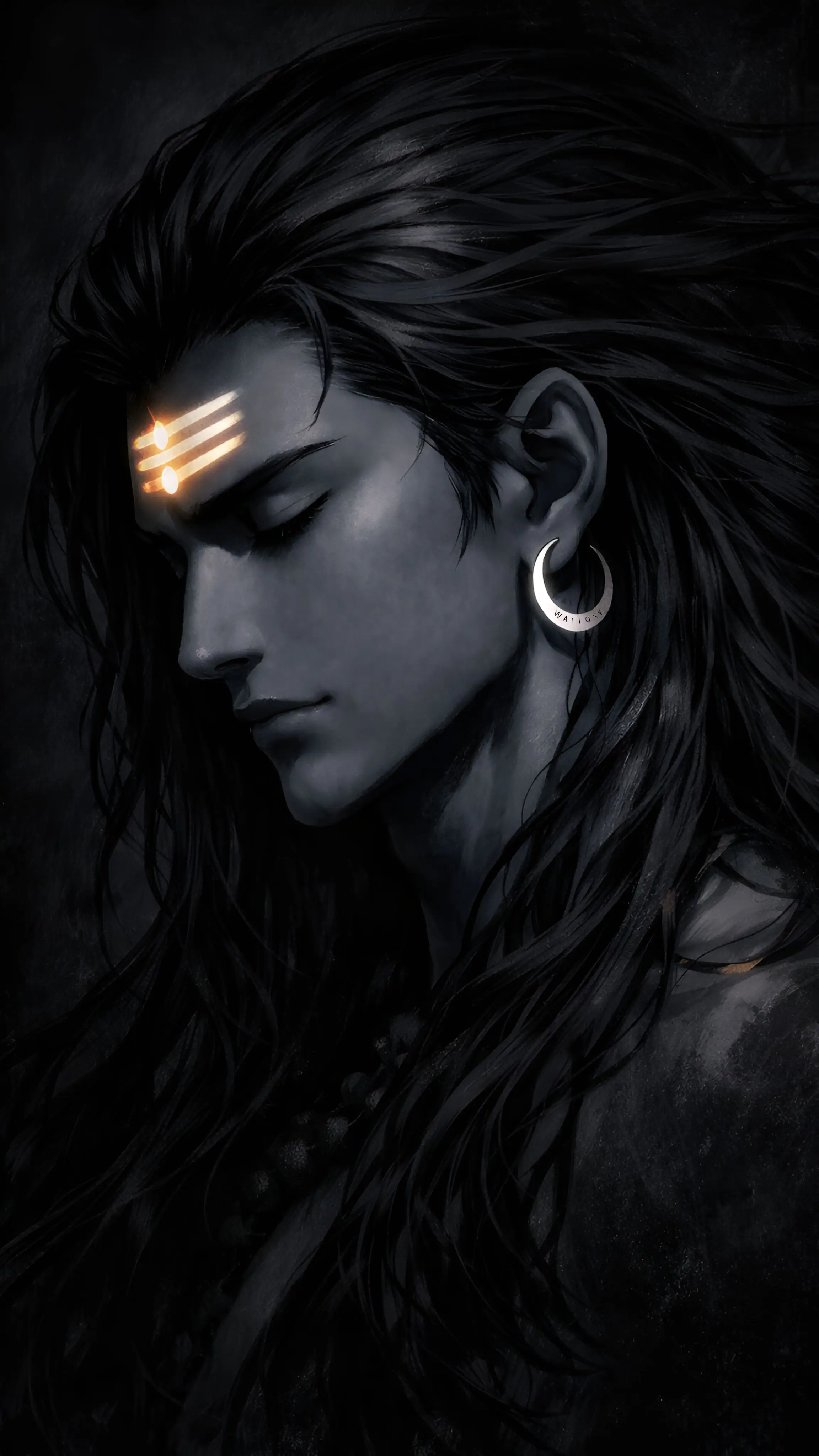 This HD image features a dark side profile of Mahadev with a glowing tilak, long flowing hair and a calm divine expression on a black background. Perfect for mahadev pic, mahadev picture, mahadev photo hd, mahadev ki photo and mahadev pic wallpaper. Download this wallpaper for free and it is Copyright free – no attribution required.